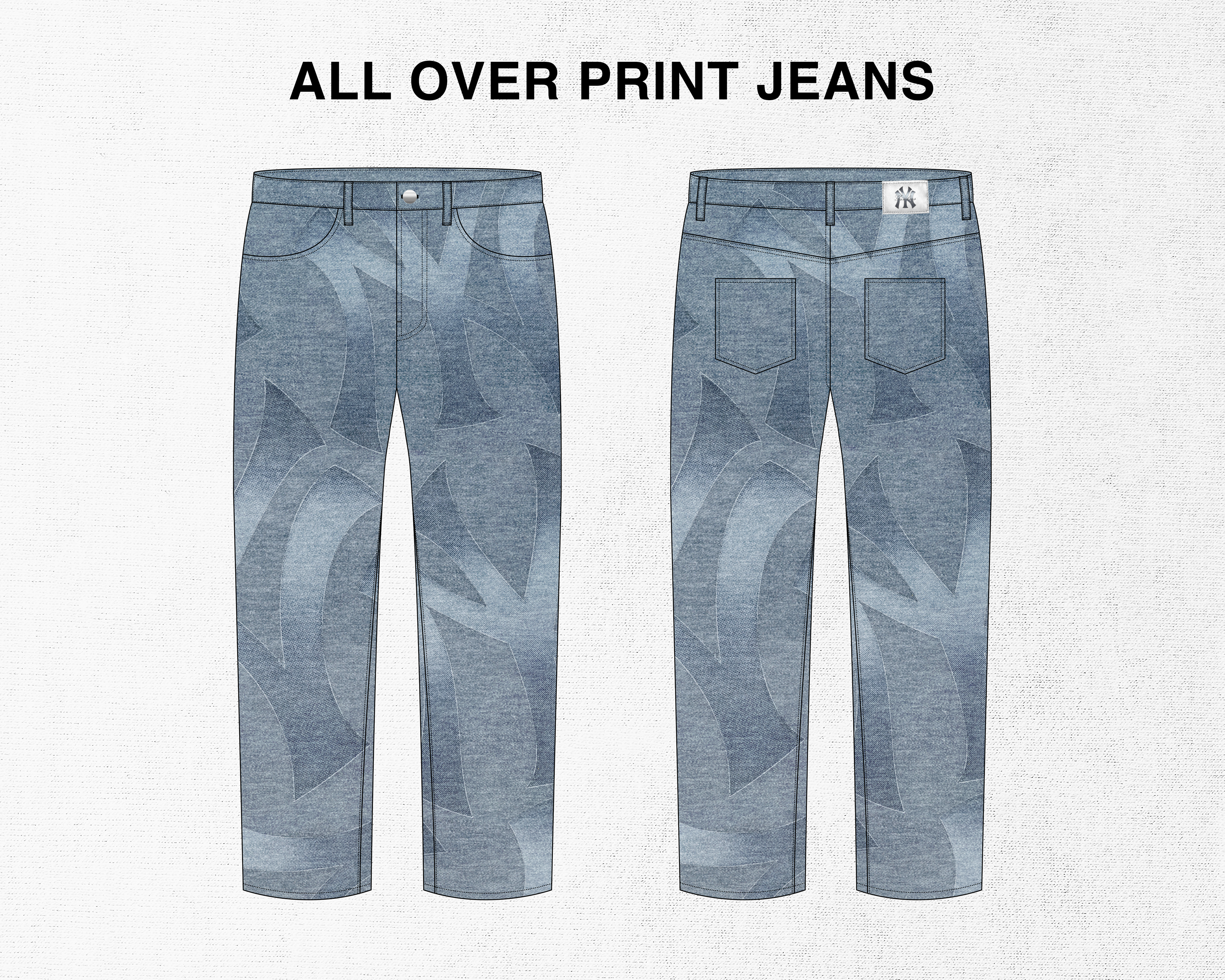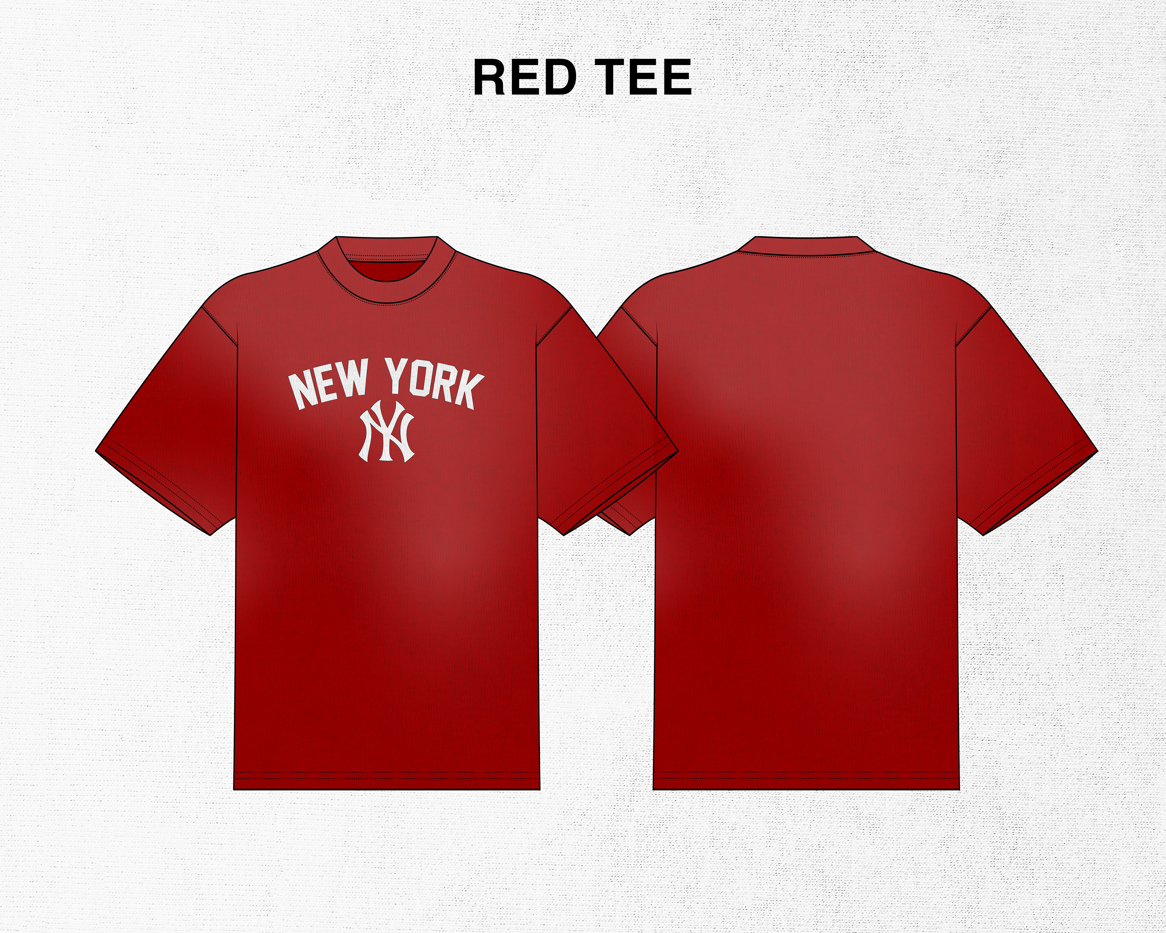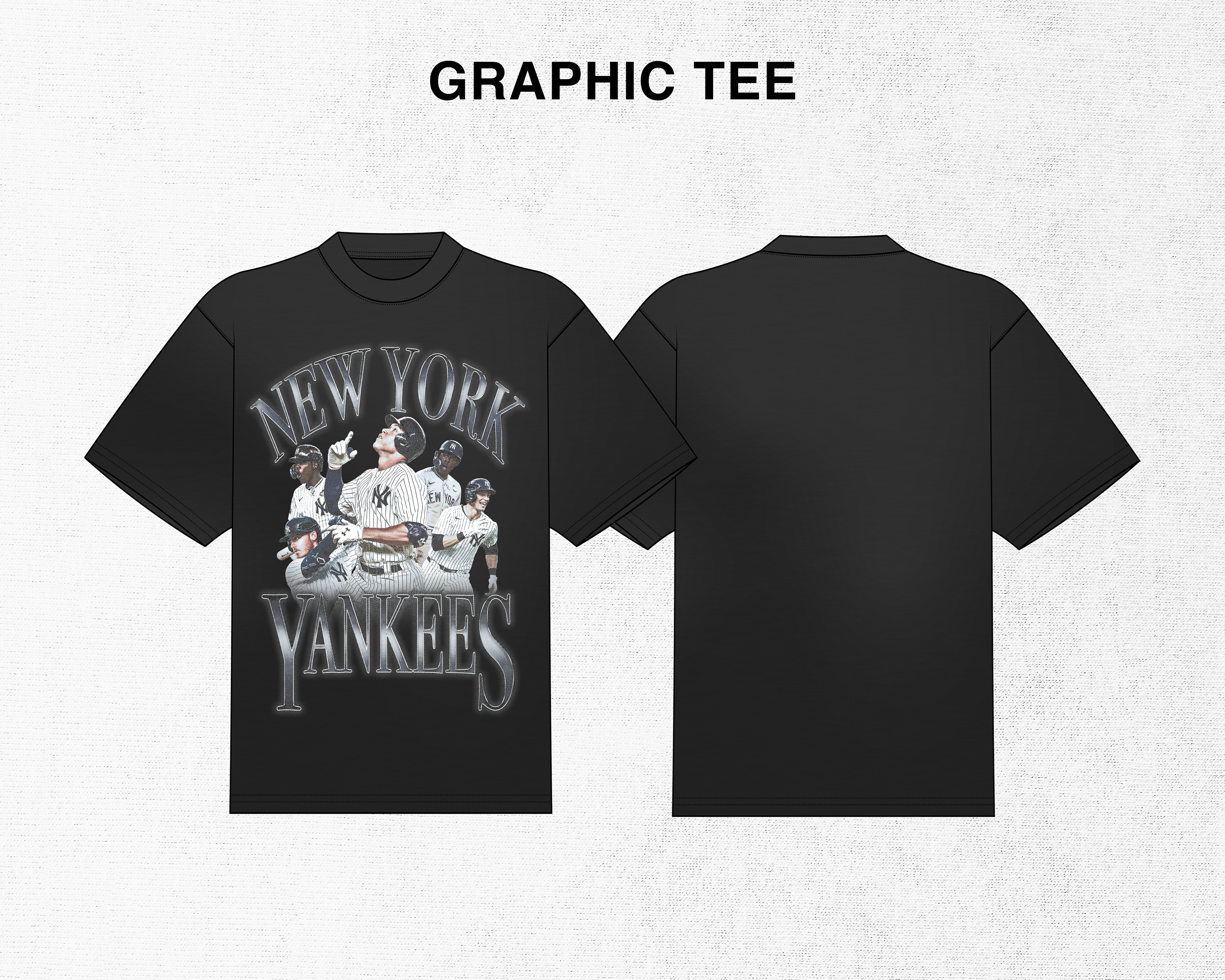 Yankees merchandise concepts inspired by vintage baseball apparel. The designs maintain a classic look throughout the entire capsule, incorporating denim prints and unique graphics on all the shirts.