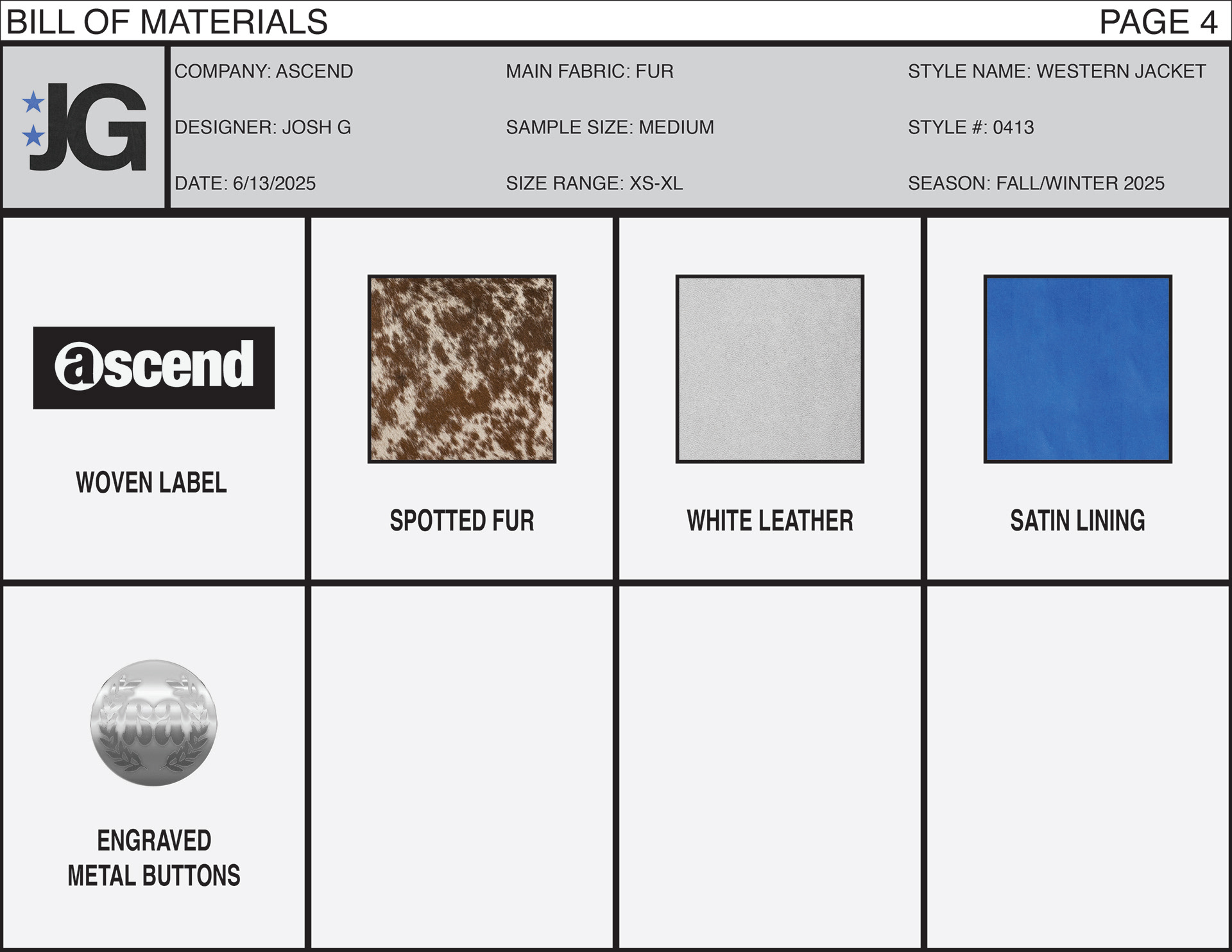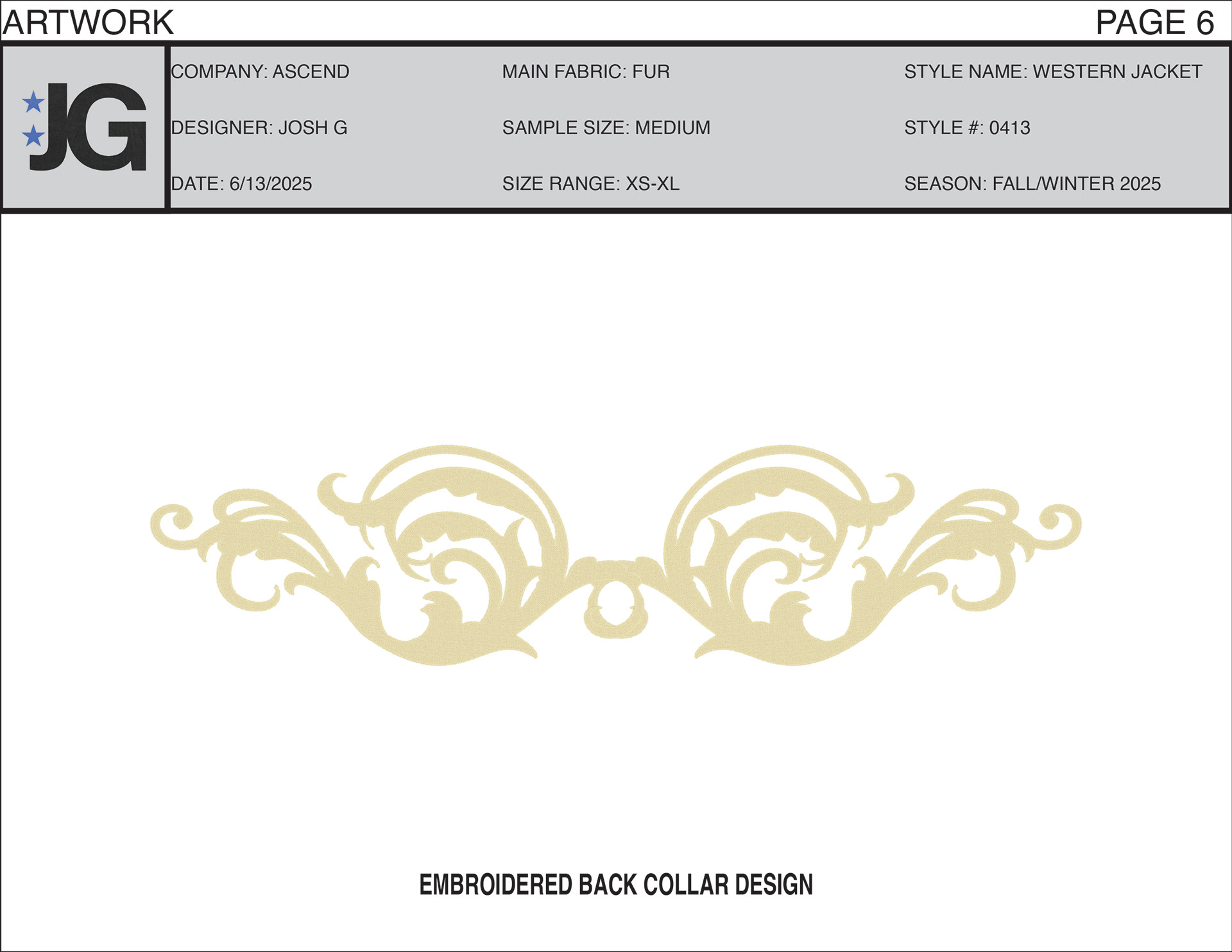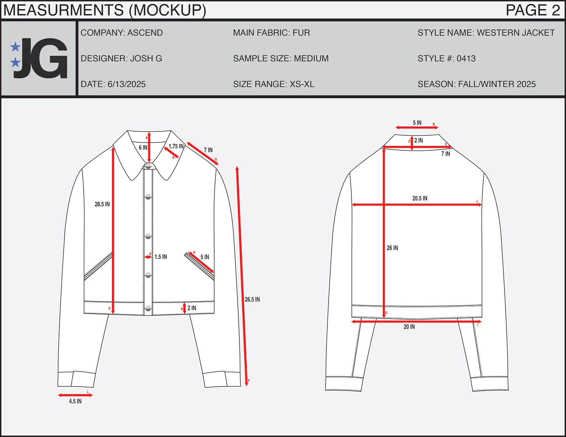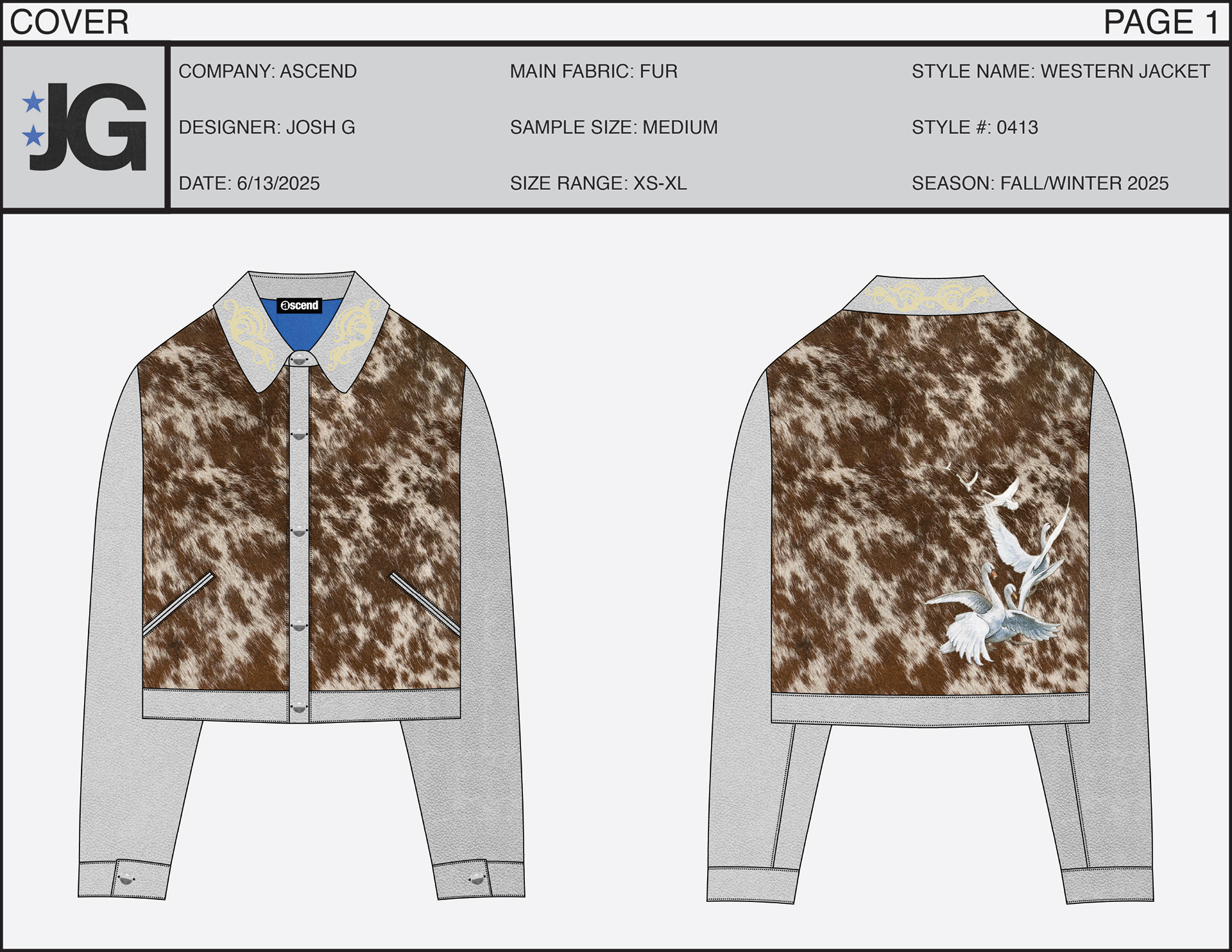 Work in progress tech pack designed for a western style fur & leather jacket.
